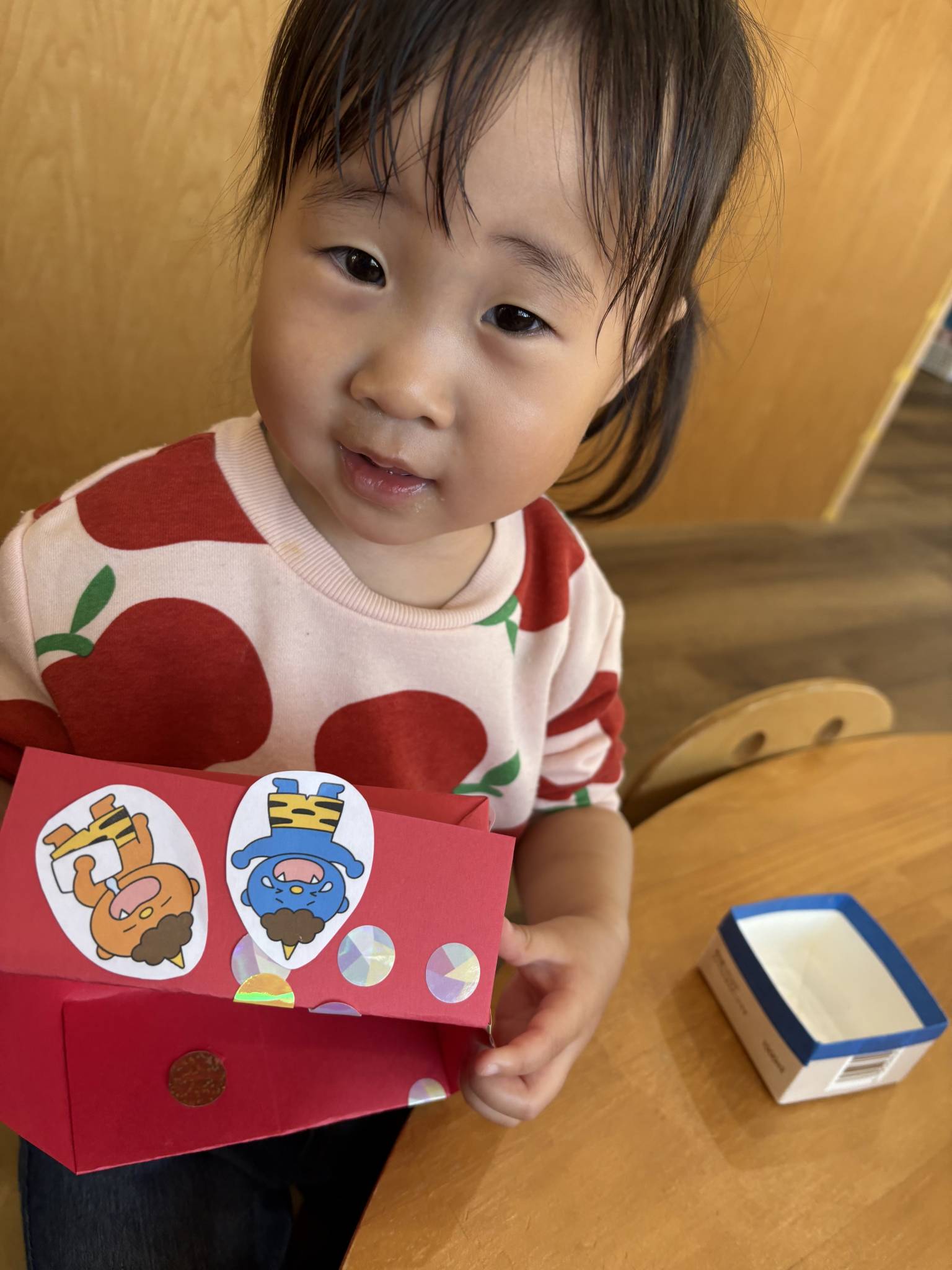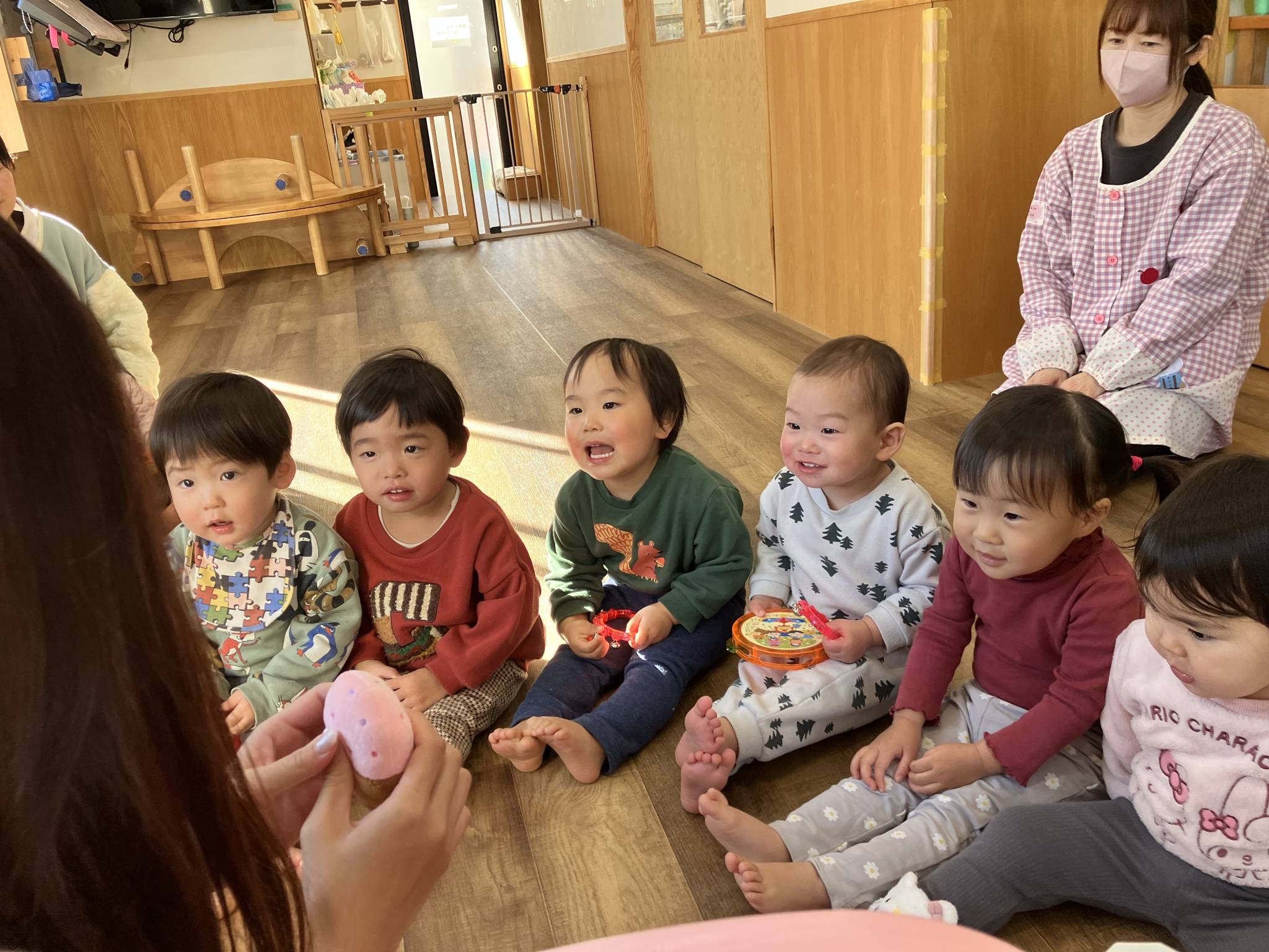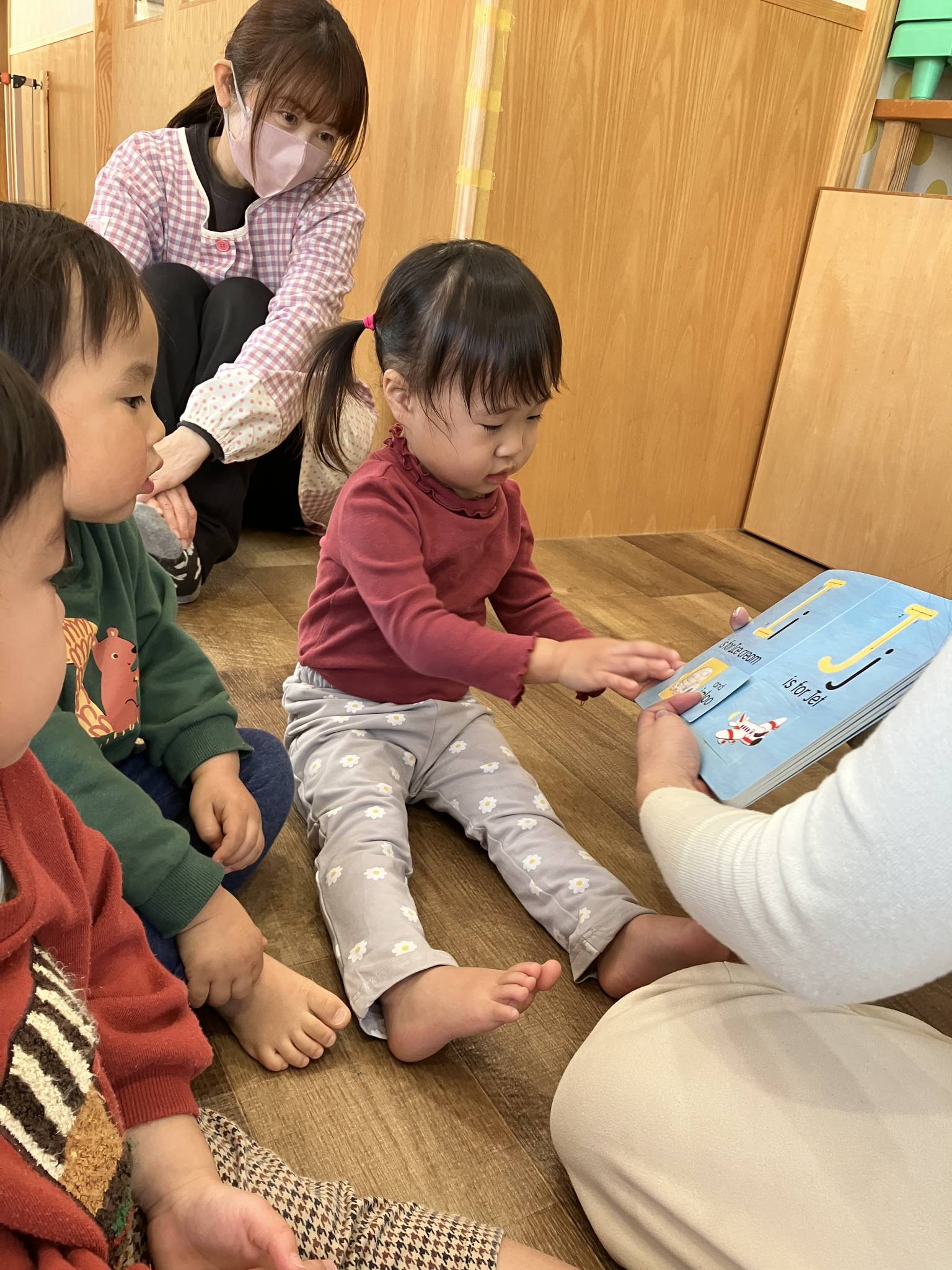 毎月2回ある英語も楽しんでいます♪2歳児さんの中には『ブルー』『ドッグ』など色や動物をたくさん覚えた子も☺️
