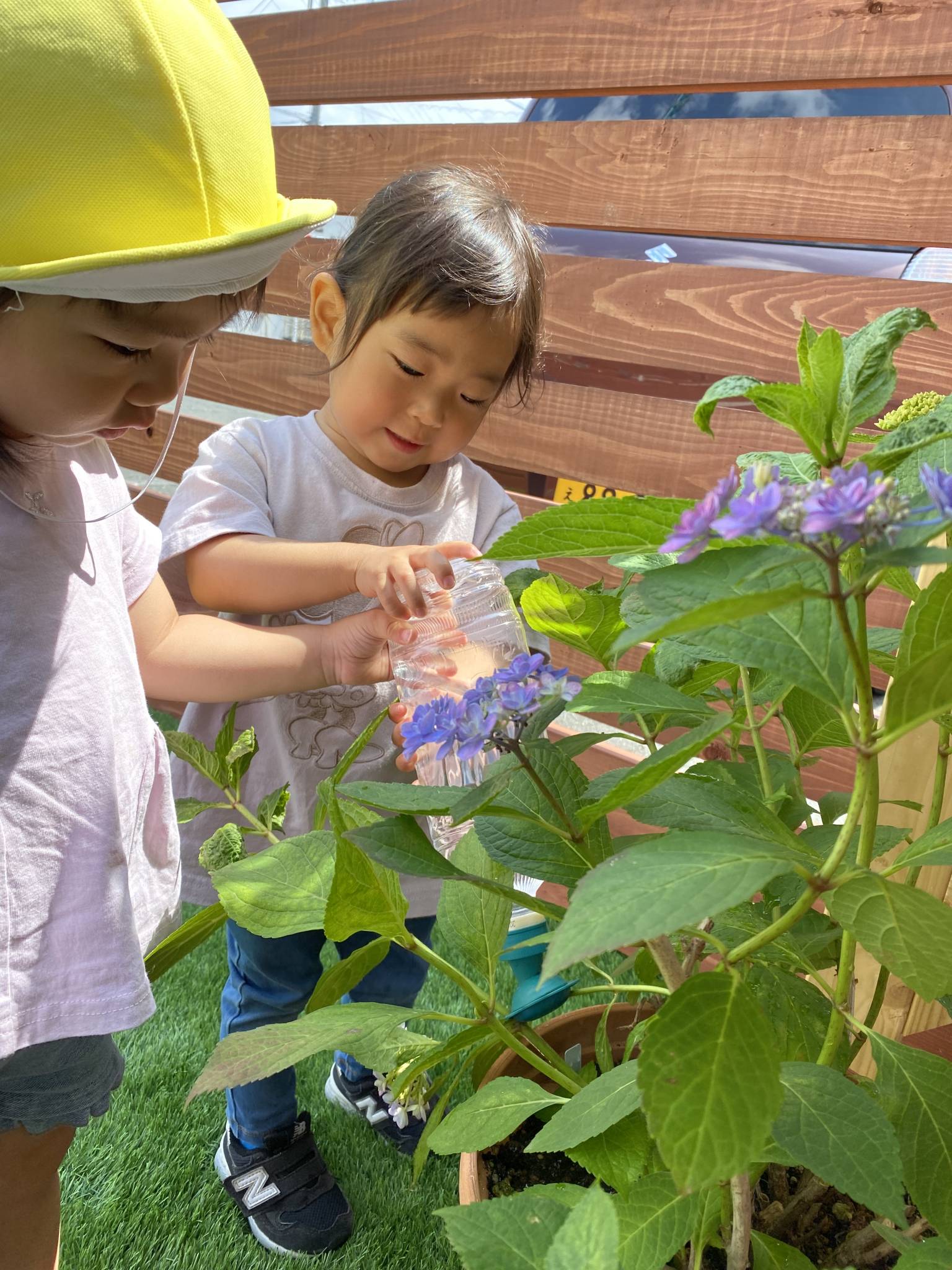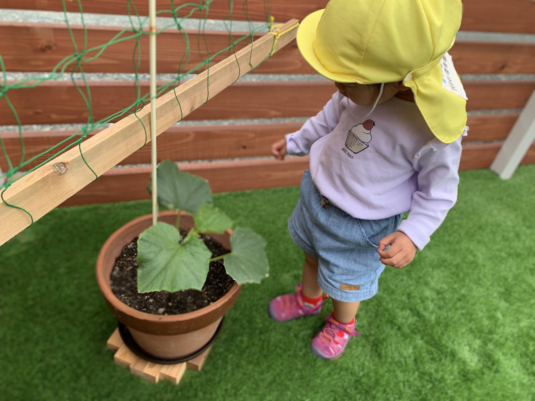 園庭の野菜や・花の観察やお世話もKIKI保育園子どもたちの日課になってきました🤗